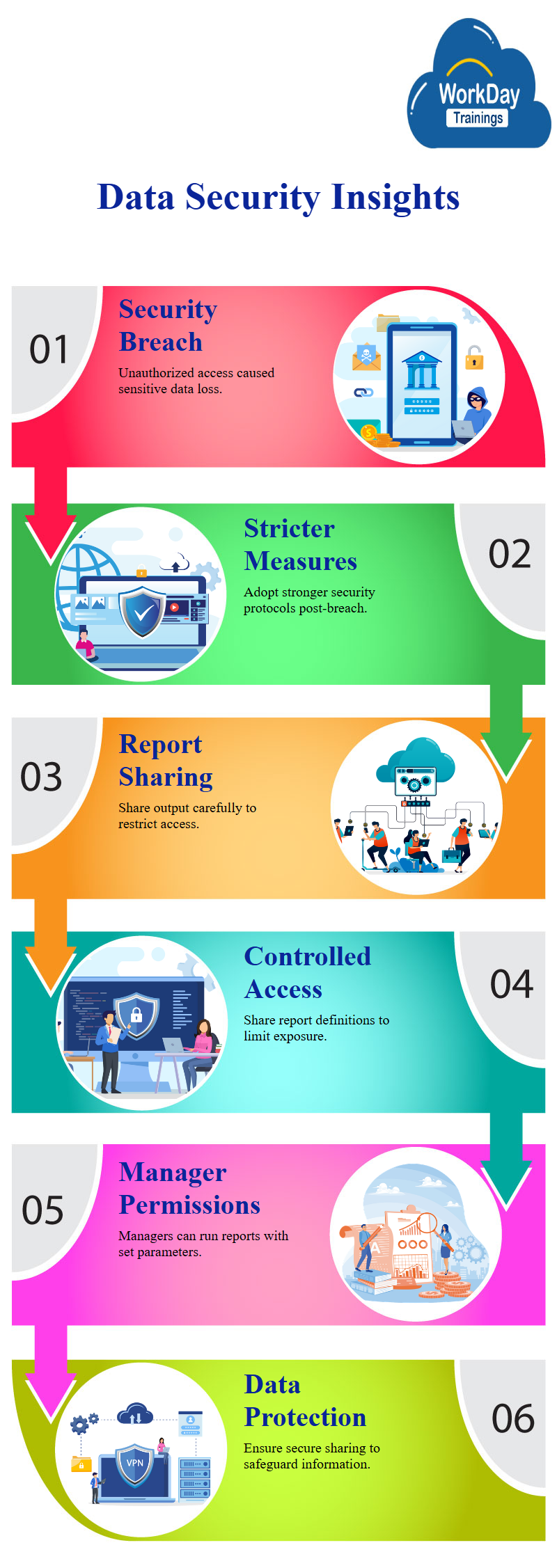 We can suggest that the report definition should be shared with managers to ensure accent control. The report output should be shared as the Workday manager sees it. The focus then shifts to the Workday issue of sharing the report output with other users.