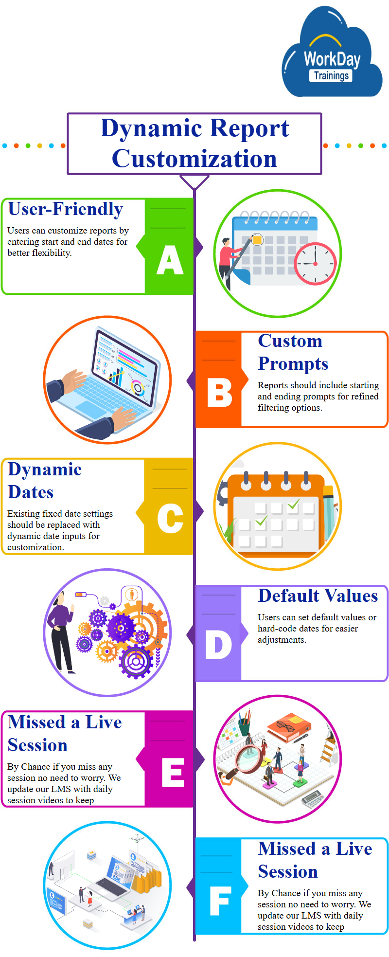 To make this possible, the report should be added to the Workday custom report edited. The report should have a starting prompt and an ending prompt, which should be used for the filter output.