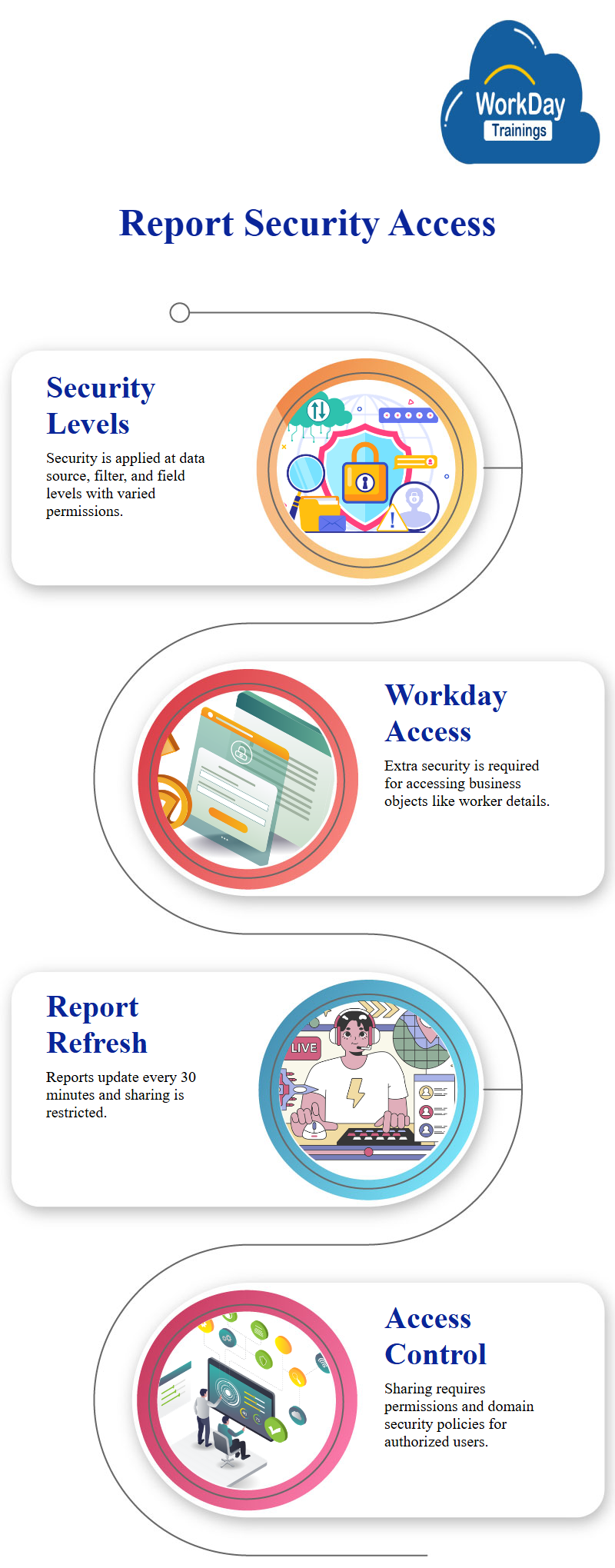 If the report is shared with other users, they can run it but only with their Workday security permissions. If they do not have access to a specific field, they will see it as blank in the report output. However, this is different from sharing the report definition or asking other users to run the report.