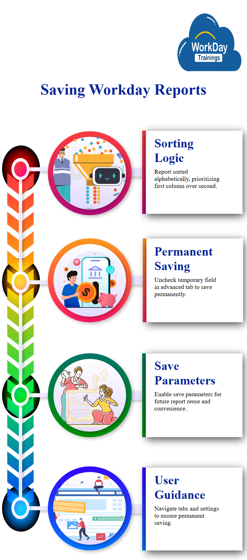 To save the report permanently, the user must uncheck the temporary report field on the advanced tab. This will allow the report to be saved permanently.