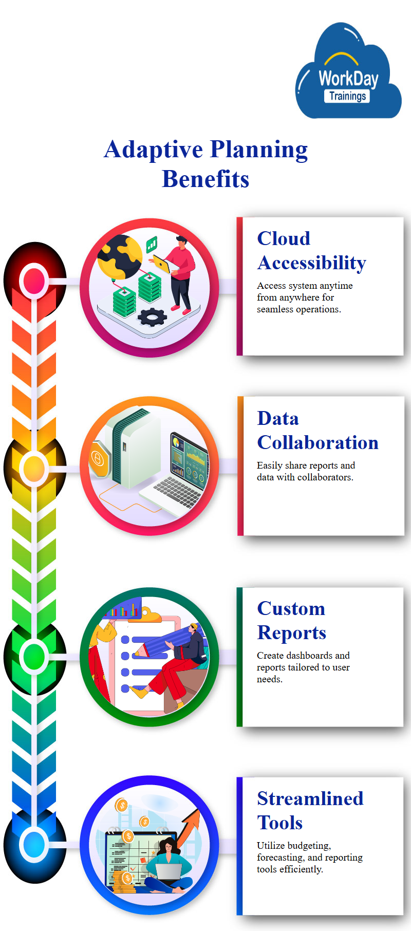 Workday Adaptive Planning is a Cloud-Based Financial Planning and analysis solution that offers users several benefits, including the ability to access the system from anywhere at any time, the ability to share data and reports with collaborators easily, and the ability to create customized reports and dashboards.