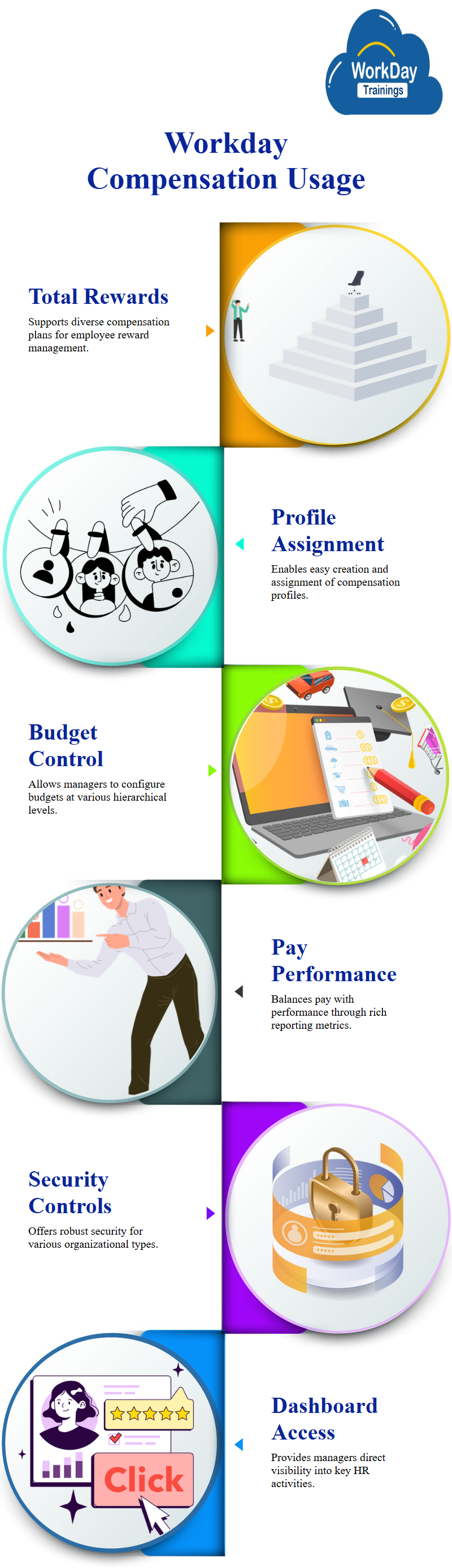 - Workday Advanced Compensation uses a dashboard interface for direct access to employment data giving managers visibility into key HR activities such as staffing salary planning, promotions, etc., from one application saving time by reducing manual efforts across various areas in human capital management HCM.