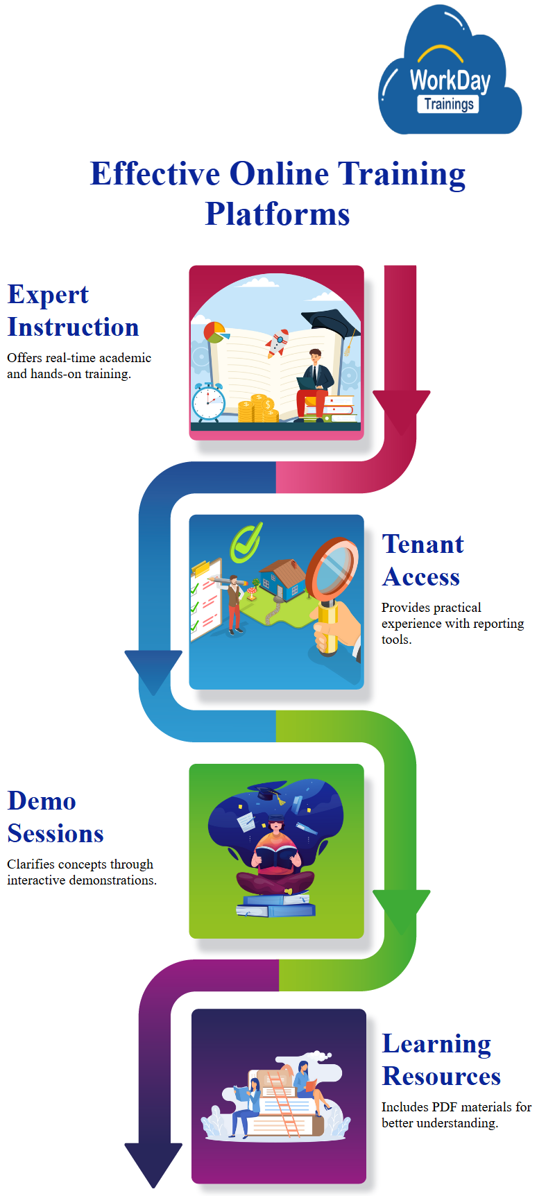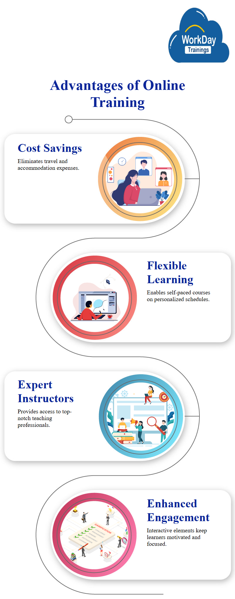 To that aim, I suggest you enroll in the courses offered by WorkdayTrainings. Your expert instruction will take place right here, in real time. You will get both an academic and hands-on understanding of the technology.