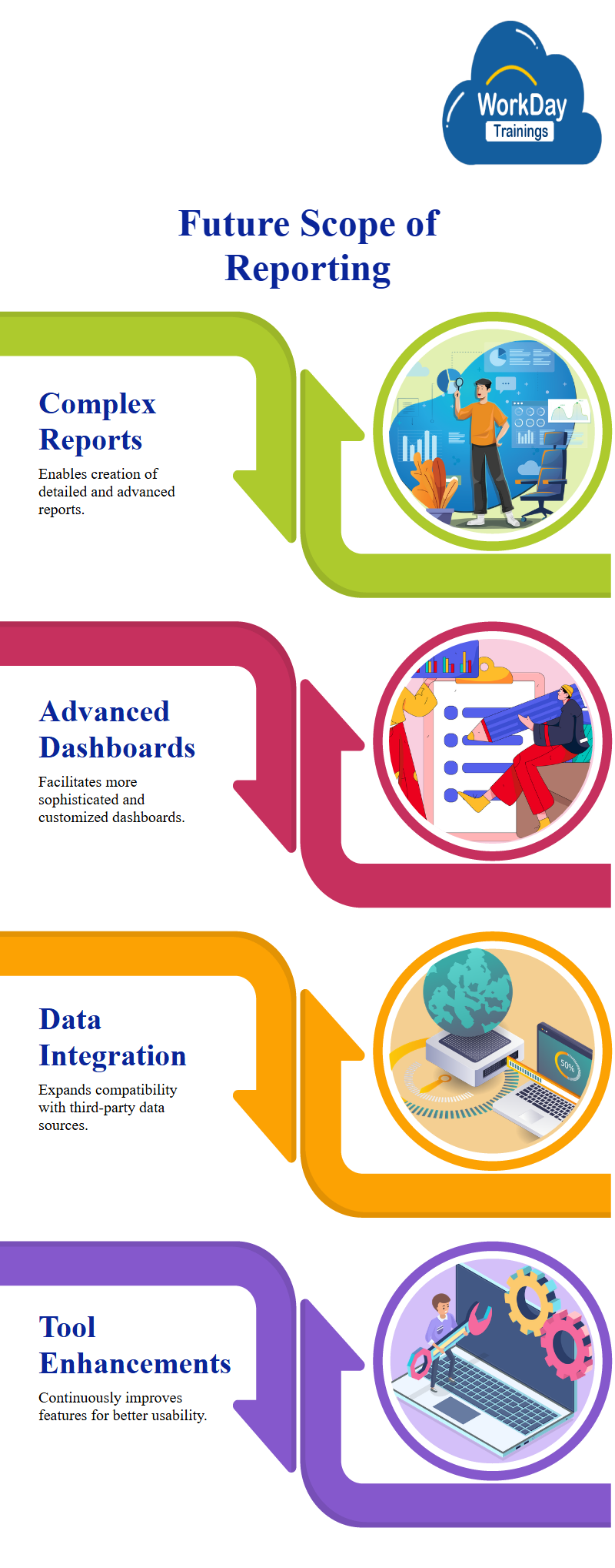 Additionally, the future scope of Workday Advanced Reporting includes expanding the tool to work with more data sources, such as third-party data sources.