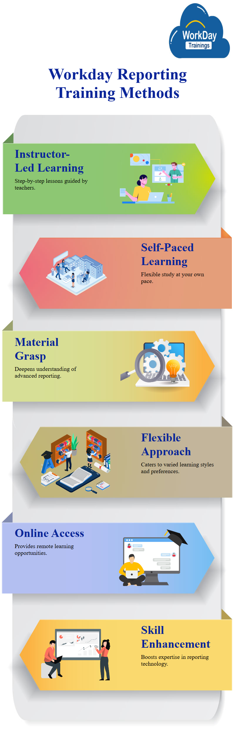 Workday Advanced Reporting Training Online provides instruction in two distinct ways: