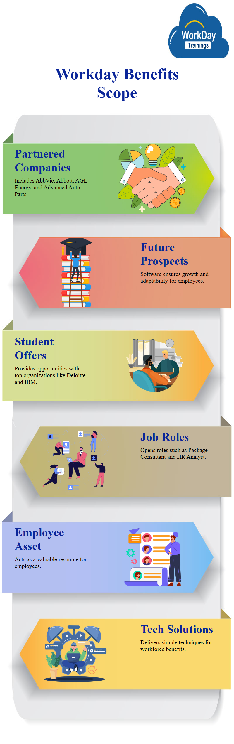 Workday Benefit course would also help the students in getting the best offers as well with various top organizations such as Deloitte, Accenture, IBM, Infosys, etc.