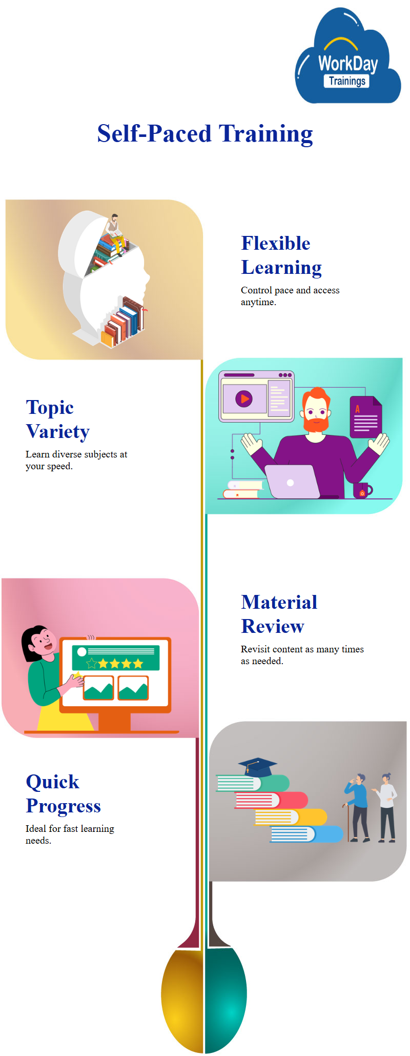Self-paced training can be used to teach a variety of topics, including workday benefits. In this type of training, the learner can access learning materials at any time, can review topics as many times as needed, and can go through the course at their own speed. This type of training is well-suited for learners who need to move through the content quickly or need to have flexible access to the learning materials.
