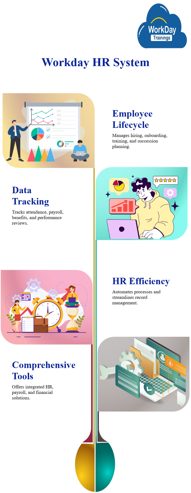 Workday is a cloud-based Human Capital Management (HCM) system. It is used to track and manage employee data, including time and attendance data, payroll, benefits, and performance reviews. It enables companies to manage the entire employee lifecycle from hire to retire, including onboarding, training, development, and succession planning.