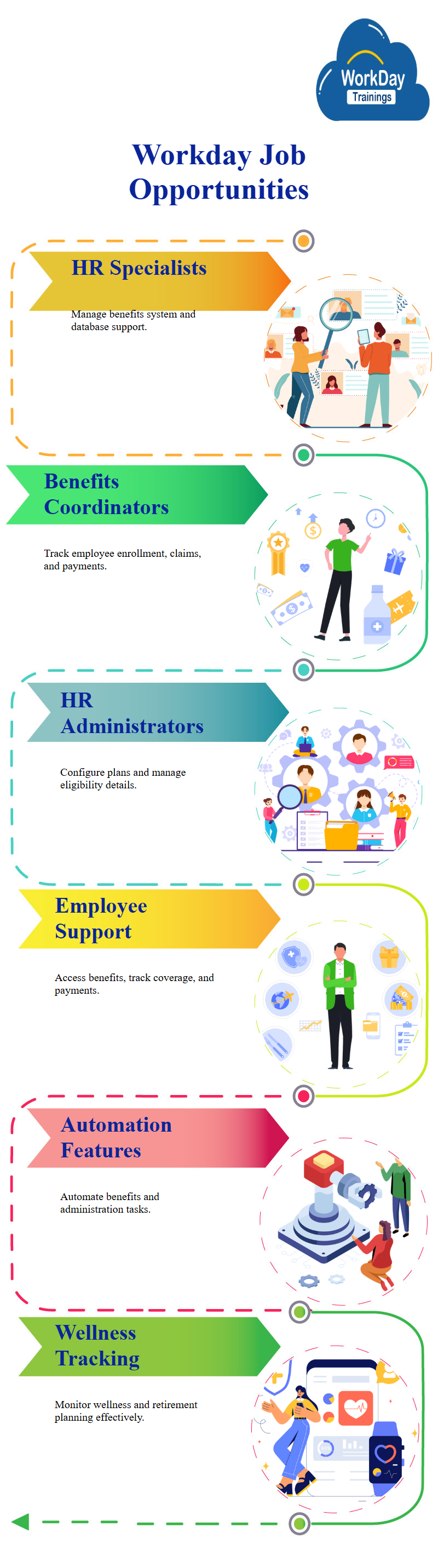 Employment opportunities for Workday Benefits include HR Specialists, Benefits Coordinators, and HR Administrators. HR Specialists are responsible for managing the Workday Benefits system, maintaining the benefits database, and providing employees with support and guidance on how to use the system. Benefits Coordinators are responsible for tracking employee enrollment and contributions, managing claims, and processing payments. HR Administrators are responsible for configuring and managing benefit plans, managing eligibility for employees and dependents, and tracking employee wellness and retirement planning.