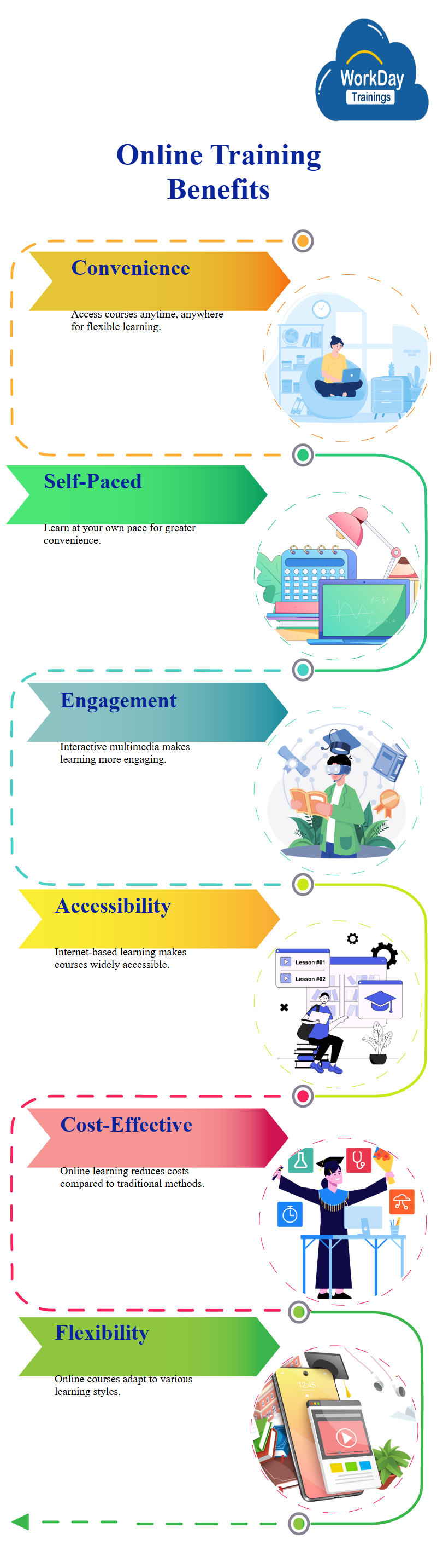 - Convenience and Flexibility: Online training is convenient and flexible, allowing learners to access courses and learning materials at any time, from any location.