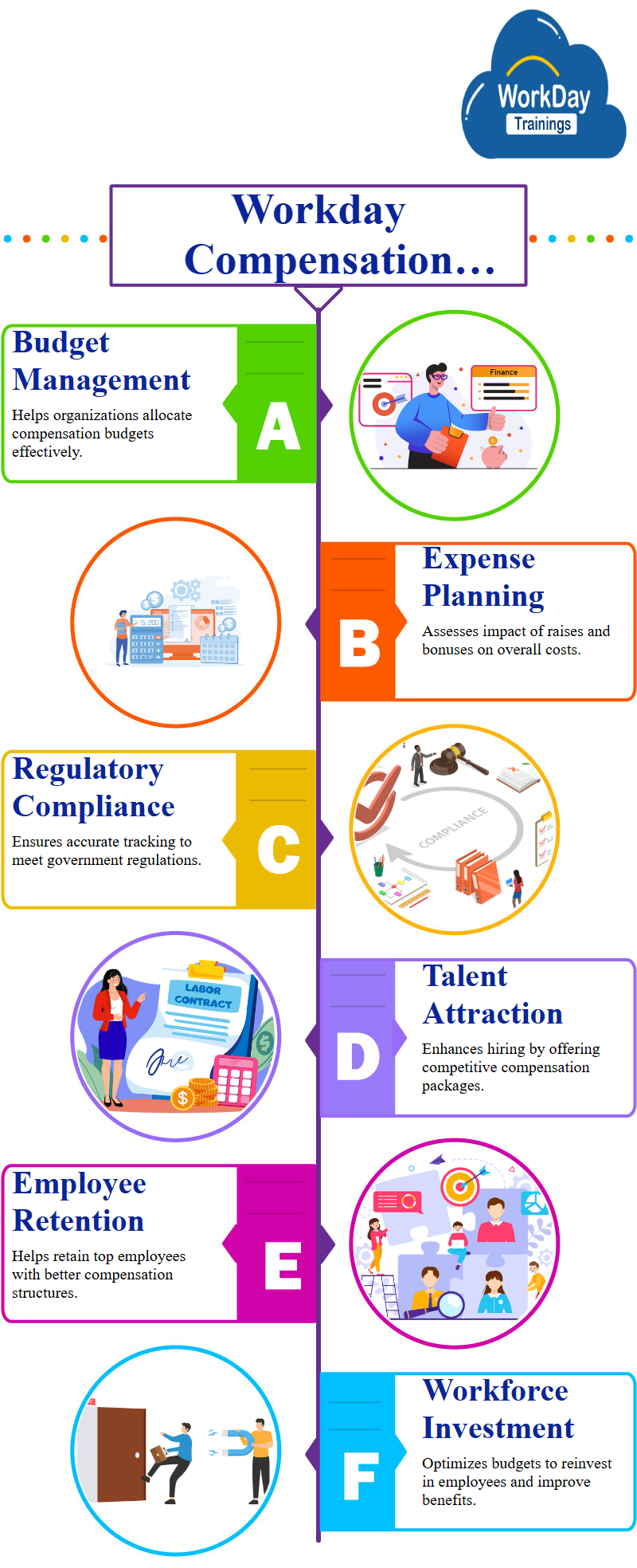 - Finally, Workday Compensation can help organizations attract and retain top talent. By offering a competitive compensation package, organizations can make themselves more attractive to potential employees. Additionally, by using Workday Compensation to manage their compensation expenses more effectively, organizations can free up more money to reinvest in their workforce and offer more competitive compensation packages to their employees.
