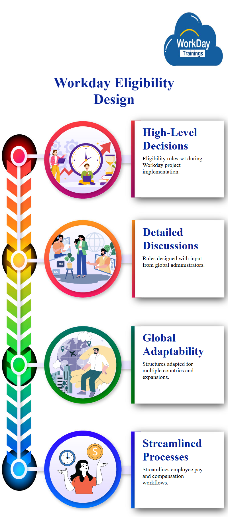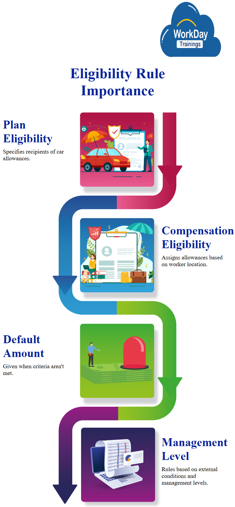 The eligibility rule is a high-level decision made at the Workday implementation stage of the Workday project, with the compensation team brainstorming on how to define eligibility rules, pay employees, and streamline the process.