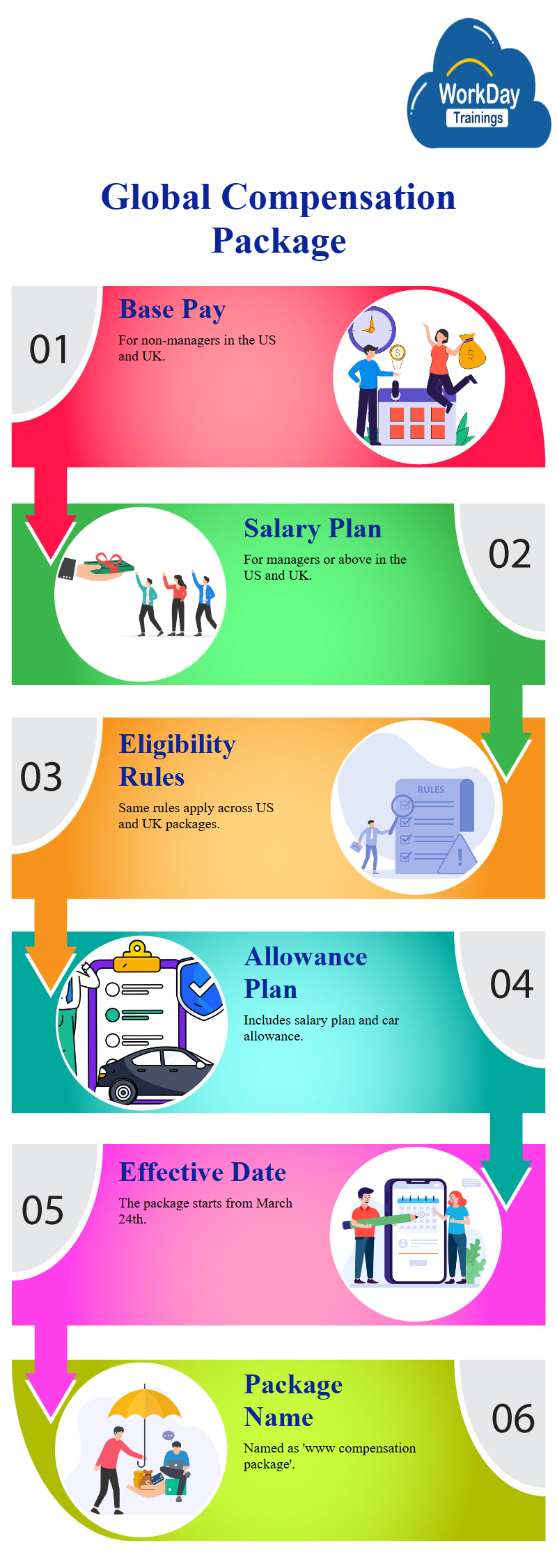 The creation of a compensation package Workday for employees in the United States and the United Kingdom. The package includes a base pay for non-managers and a salary plan for managers or above.
