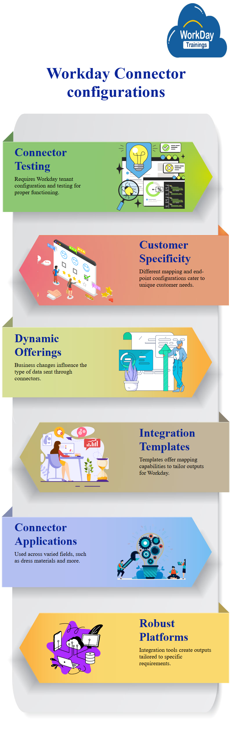 Workday connectors, such as the most famous one, are used for various applications, such as dress materials and Indian dresses. These connectors require some level of Workday tenant configuration and testing to ensure they are functioning correctly.