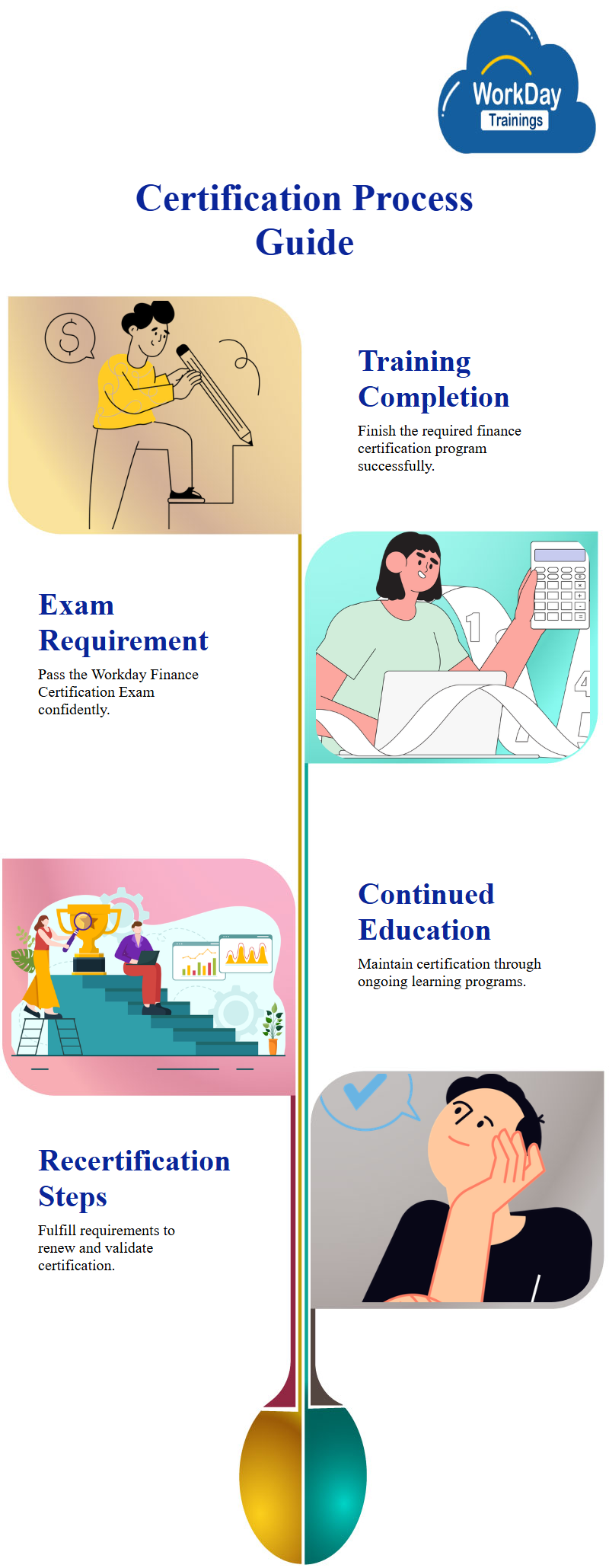 As the process of workday finance certification will vary depending on the specific finance certification program that you choose to pursue. However, workday finance certification generally involves completing a finance certification program, passing an exam, and then maintaining your certification through continued education and recertification.