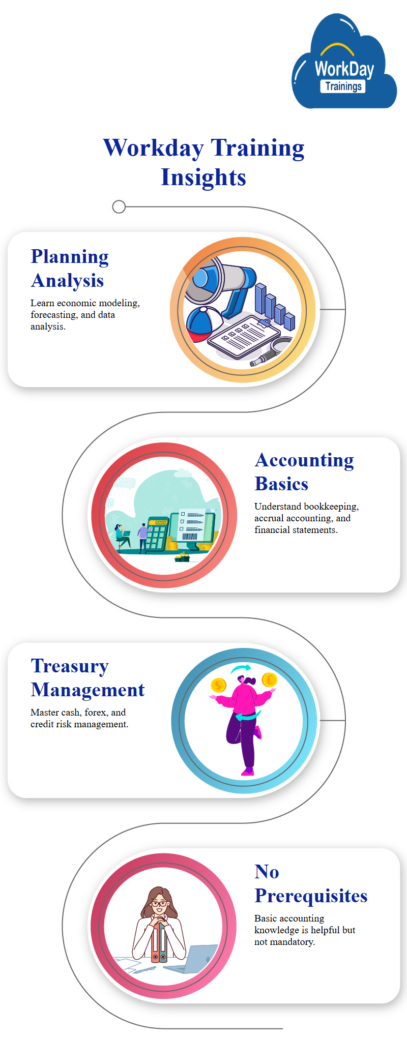 Workday Finance Training covers various topics related to financial planning and analysis, accounting, and treasury management. The key concepts covered in this Training include: