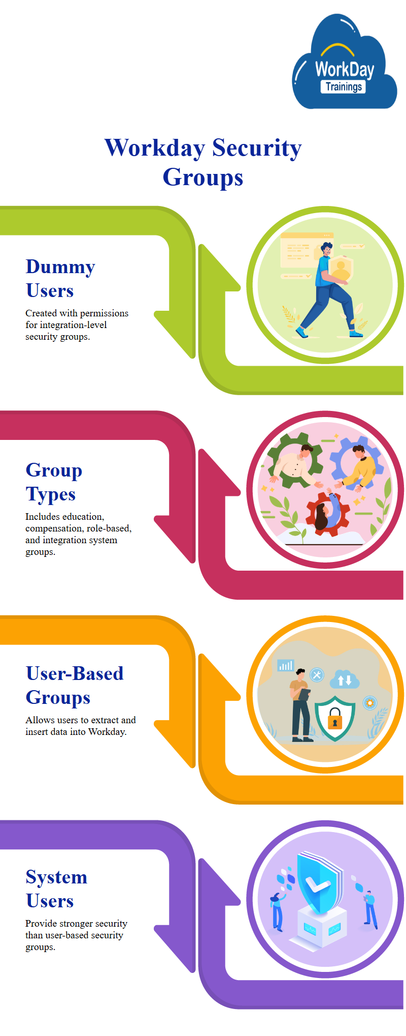 Creating a user-based security group is essential, allowing users to extract and insert data from the workday.