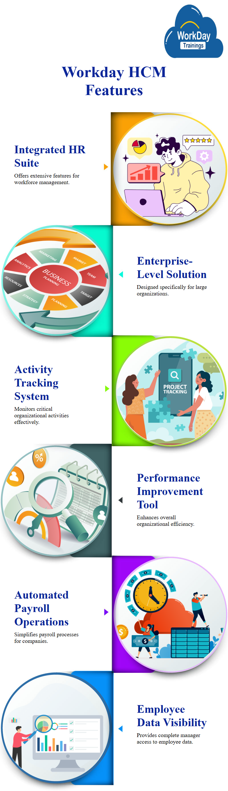 Workday HCM is an integrated HR suite that offers an extensive set of features. It automates payroll operations and provides managers with complete visibility of employee data. It is specially designed for enterprise-level organizations; Companies can use this system to track critical activities and improves performance.