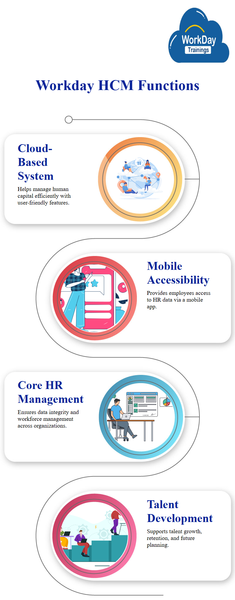 Workday HCM technology is a cloud-based system that helps organizations manage their human capital. The system is designed to be user-friendly and helps organizations keep track of employee data, time off, and payroll.Workday HCM also offers a mobile app that lets employees access their information. Workday HCM fundamentally works around three core modules-