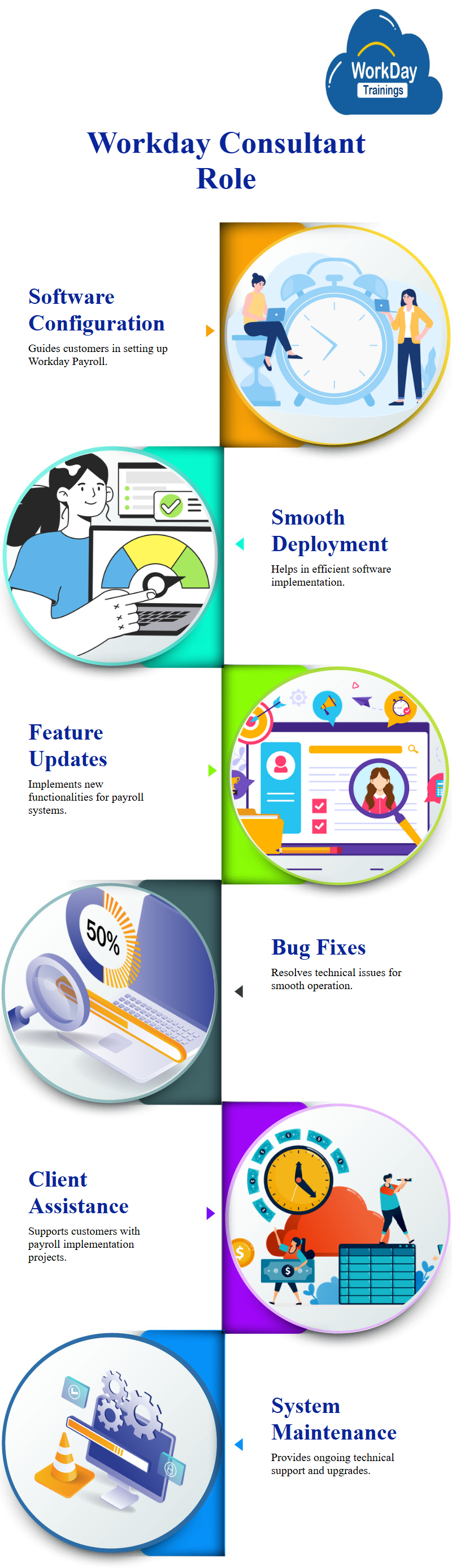 Workday Payroll consultants are experienced professionals who help customers configure, deploy, and maintain their payroll applications. They guide the customer in the best way to configure the software per their business requirements. On deploying, they help the customer smoothly deploy the software. Also, they help in the best possible way to upgrade the software. In maintaining the software, they help in the best possible way to manage the software by providing technical assistance.