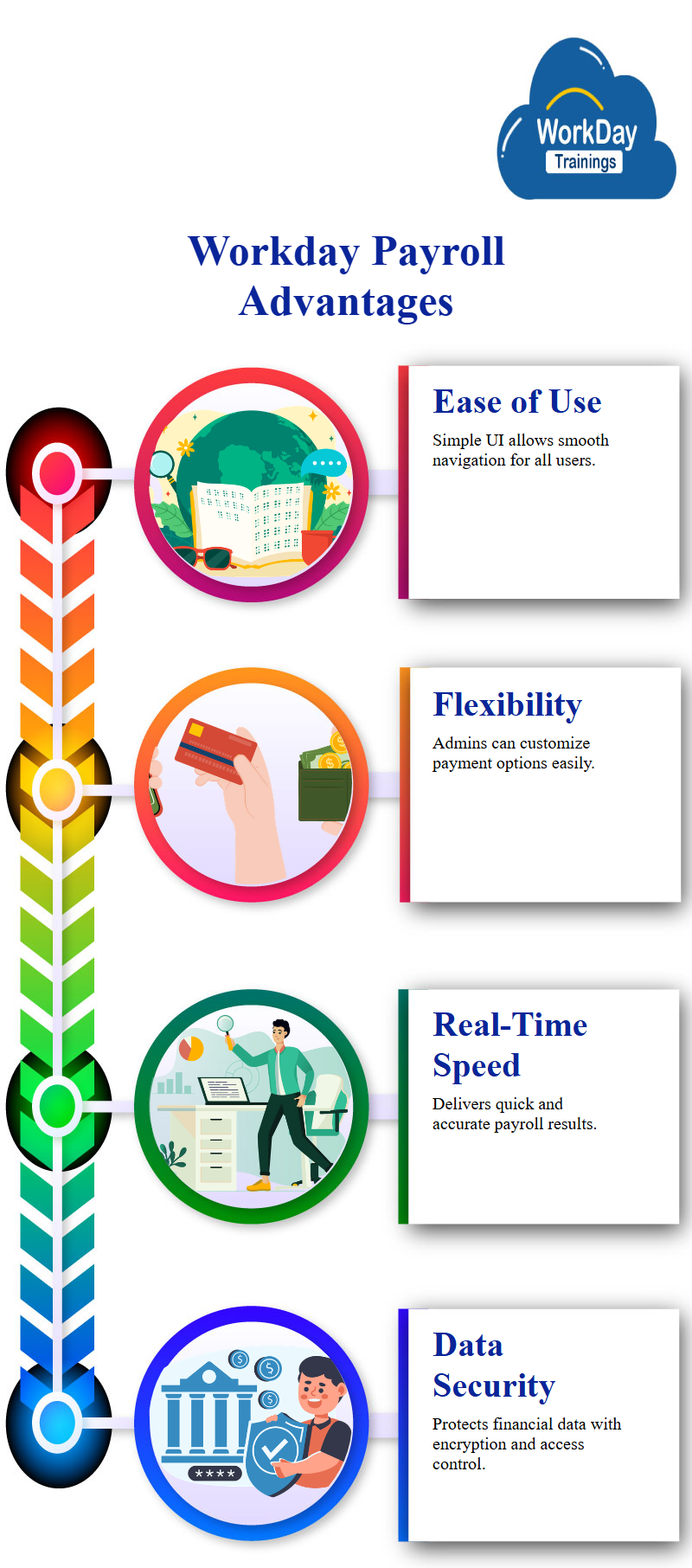 There are several advantages to using Workday Payroll, It is an easy-to-use tool, and All the employees will use it. This will be a vital tool for the HR and finance teams involved in the payroll processes. Workday will be updated by the Workday team regularly. This will be used for getting updates on the new tax laws and other payroll regulations. Also, it will be used for getting updates on the new tax laws and other payroll regulations. It will help in managing the payroll processes efficiently. It will have a lot of scope in the future.