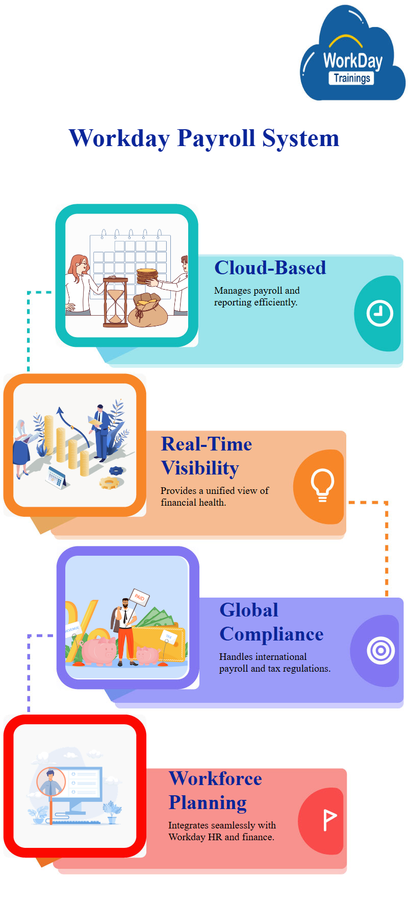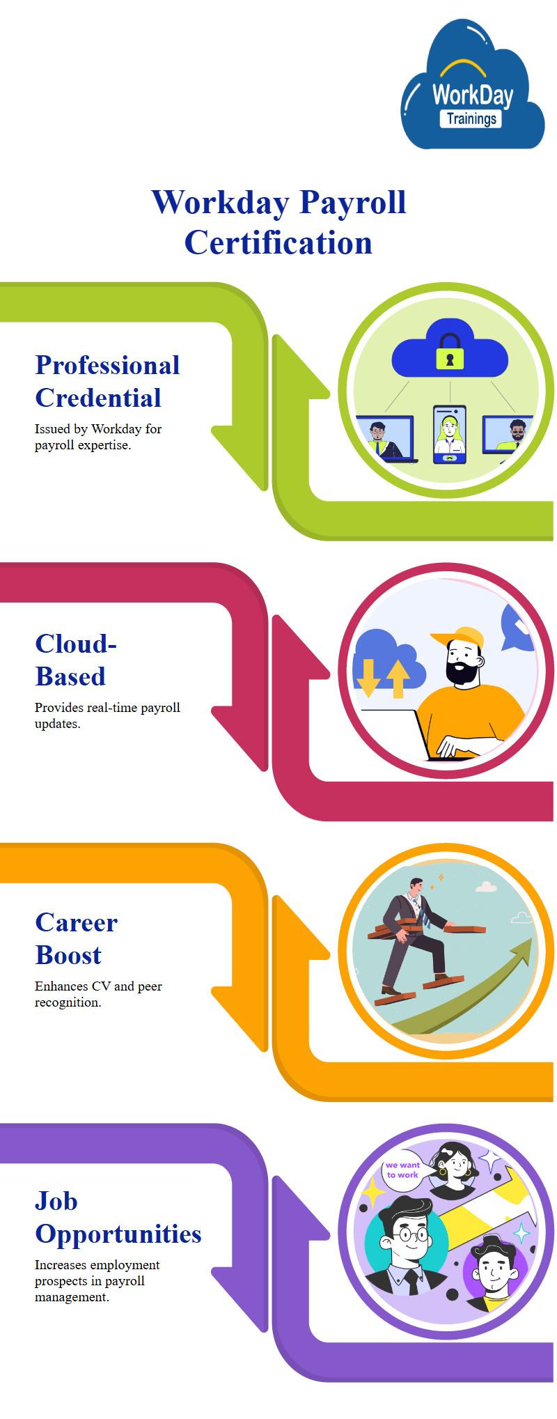 The Workday Payroll Certification is a professional certification for the Workday payroll that will be issued by Workday professional certification. Workday payroll is one of the most important modules of Workday HCM. It is a cloud-based software that provides real-time updates to the payroll department. Workday HCM and Workday Payroll are two main cloud-based applications.