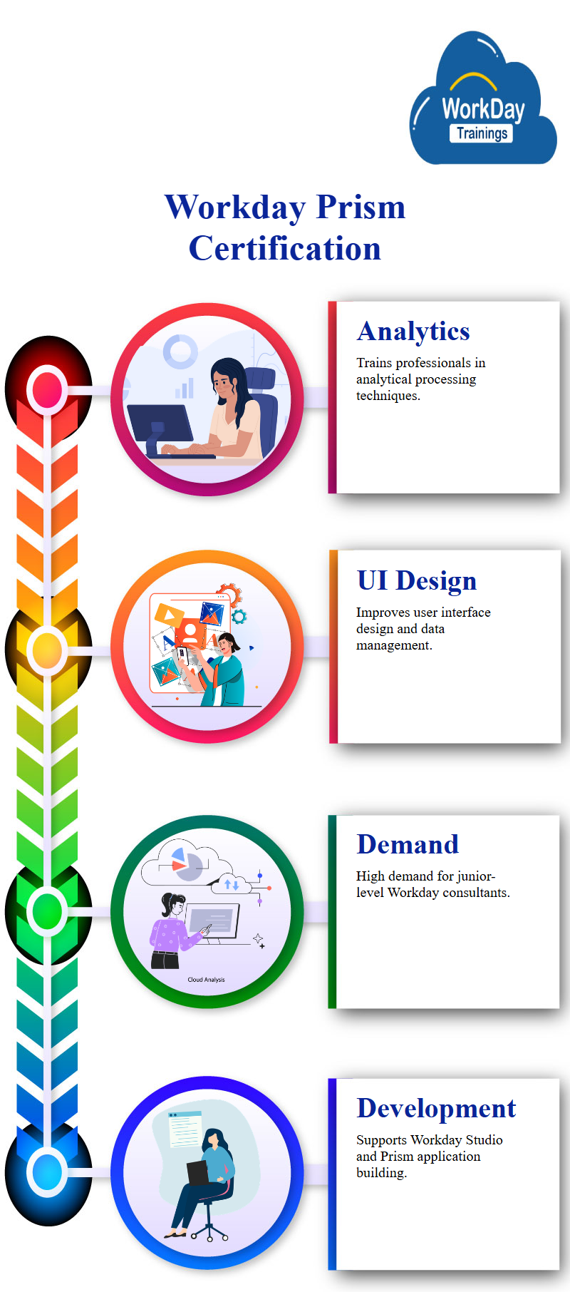 Combine Business Intelligence and Workday knowledge with Workday Prism Certification. Workday Prism is trusted by most of the top-level companies who are hiring certified Workday Prism developers. Workday supports Workday Studio and Workday Prism application development. Junior-level Workday Prism consultants who know how to create UI forms and reports are in demand currently.