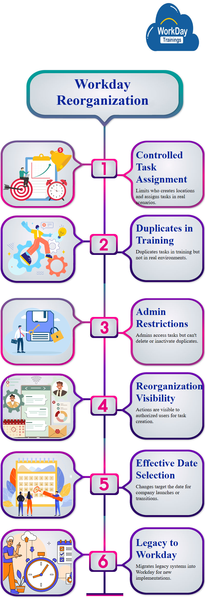 The reorganization event is a new workday implementation, and the name of the reorganization is chosen to group all activities for that day. The criteria for selecting the date for the reorganization is the date the changes need to be effective.