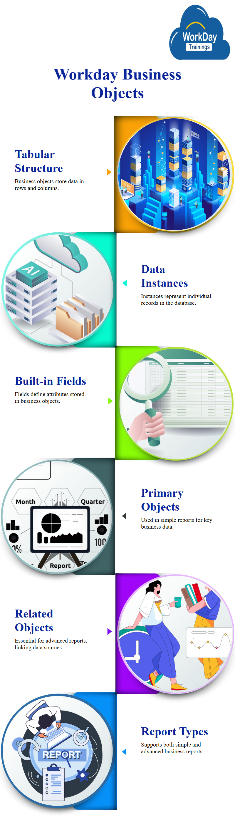 The Business object is a tabular database representation with rows and columns. It possesses a built-in field and instances, which are the data that are saved as business objects in the reports.