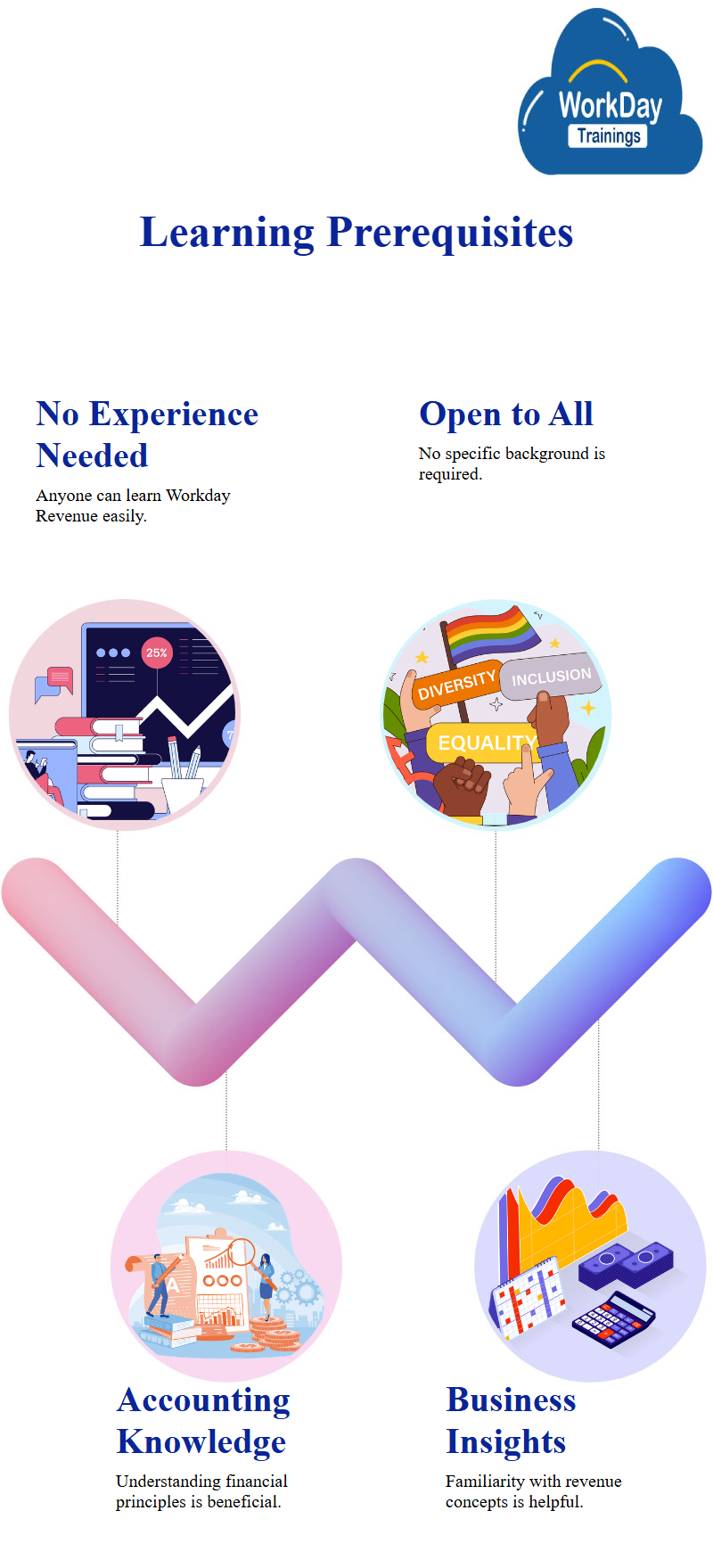 There are no specific prerequisites to learning Workday Revenue. Anyone with interest can learn Workday Revenue; no prior experience is expected. However, knowing accounting principles and financial accounting would be beneficial.