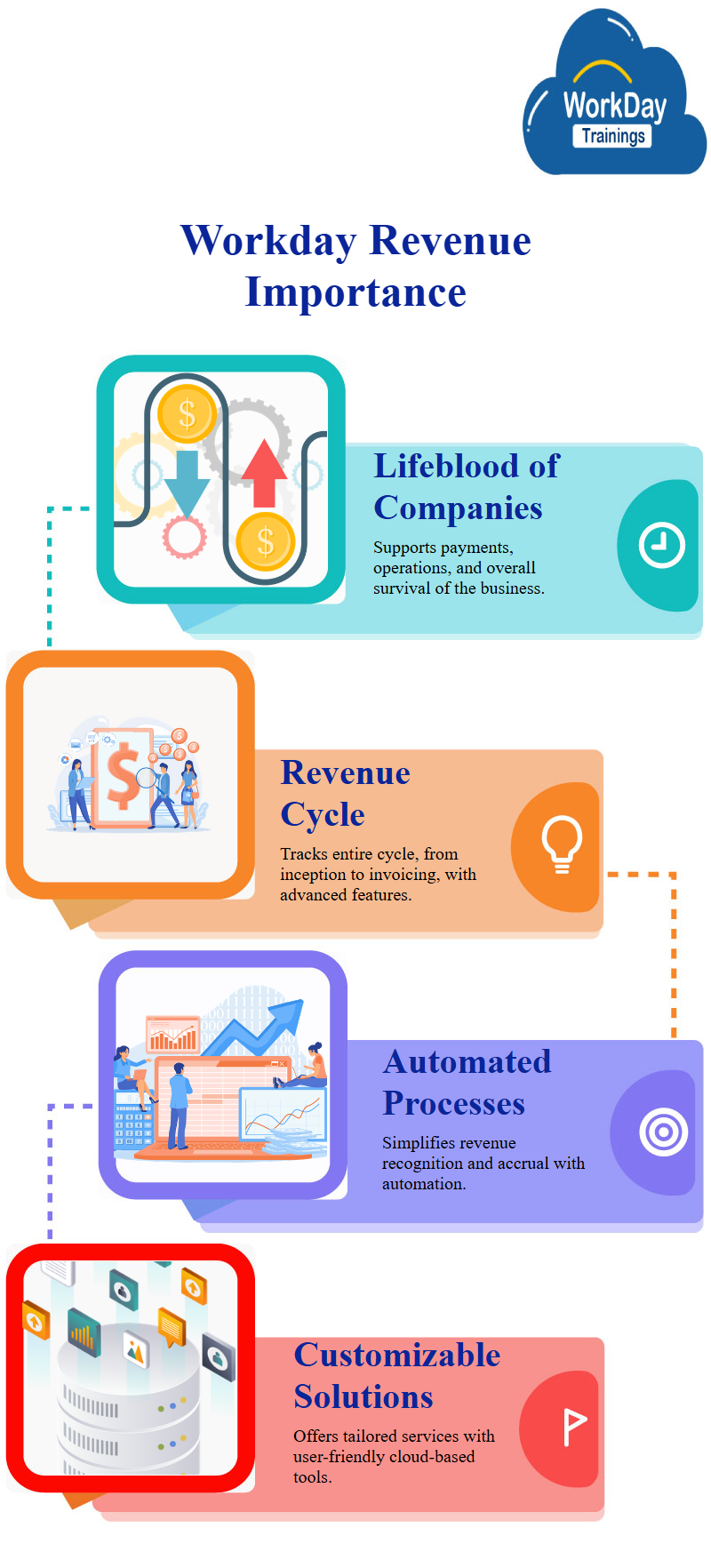 Workday Revenue helps track and manage the entire revenue cycle from inception to invoicing in the system. It has basic billing, accounts receivable management, and advanced features like configurable billing and revenue recognition rules. It helps in automating the revenue recognition and accrual processes.