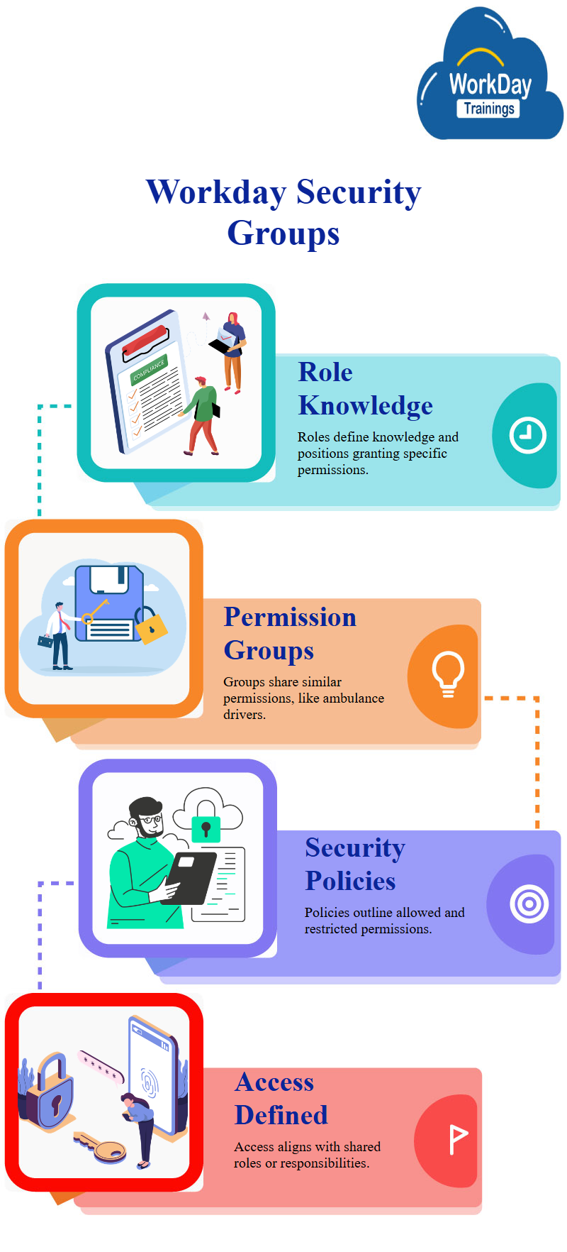 Summing up we say that A Workday security group is a group of users with similar permissions, similar to a traffic rule Workday book.