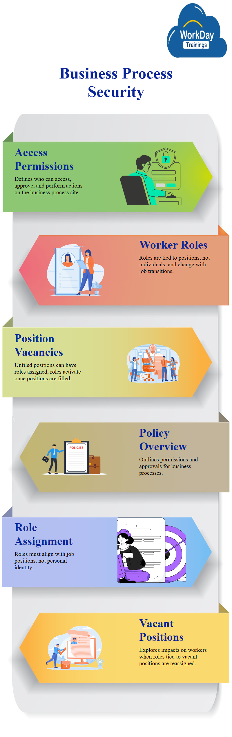 The Workday business process security policy outlines who can initiate a leaf request, hire a worker, and what specific groups of people are given access to initiate a particular process.