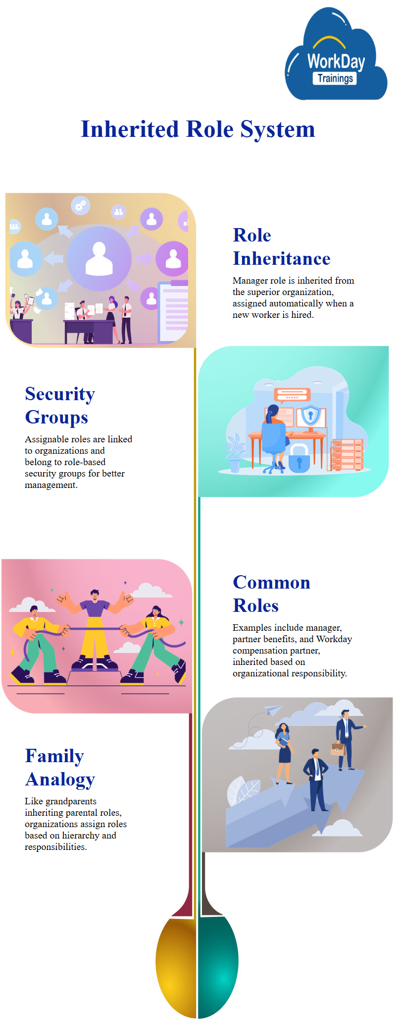 Examples of common roles include manager, partner benefits, and Workday compensation partner. These Workday roles are inherited from the superior organization and are assigned based on the organization’s responsibility or role.