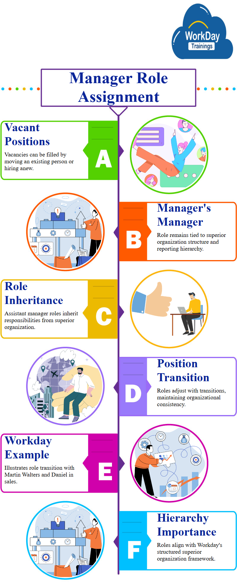 For example, if Martin Walters leaves, Daniel becomes the Workday manager of sales. The keyword “Workday manager” is important because he is part of the superior Workday organization.
