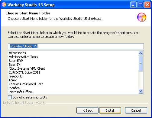 - Customize the Start menu folder as required, or leave as default. Then Click on Install.