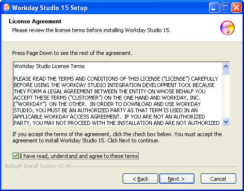 - Read the license agreement and select the check box to accept the terms of the license agreement.