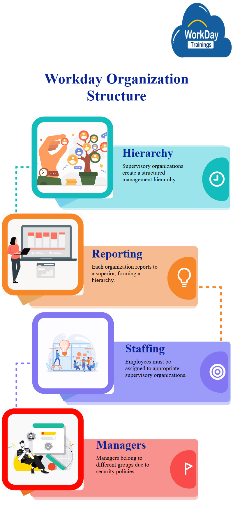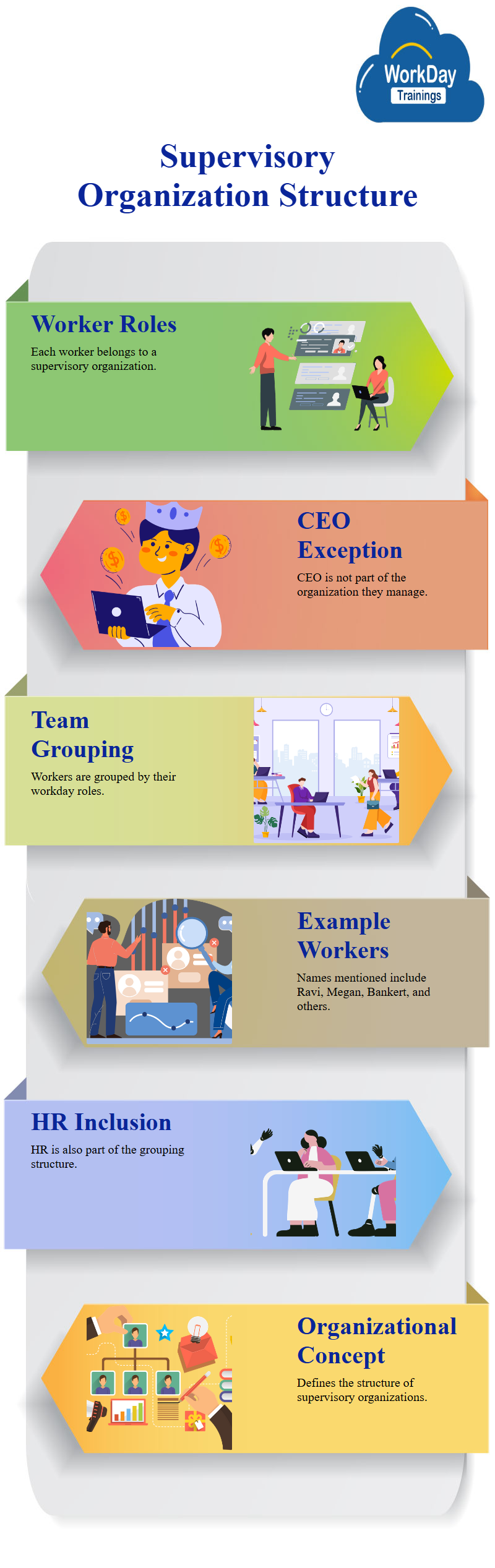 Workday Supervisory organizations are essential for the successful functioning of a workday company, as they are the core concept of what they see. They group workers into a management hierarchy, specifying who reports to whom.