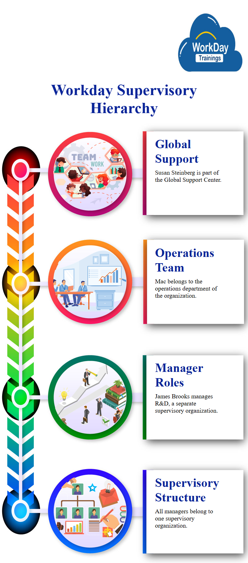 Workday Supervisory organizations can report to one another to workday form a supervisory organization hierarchy, with each having one superior organization. This provides context for staffing actions and ensures that all workers are part of the organization.