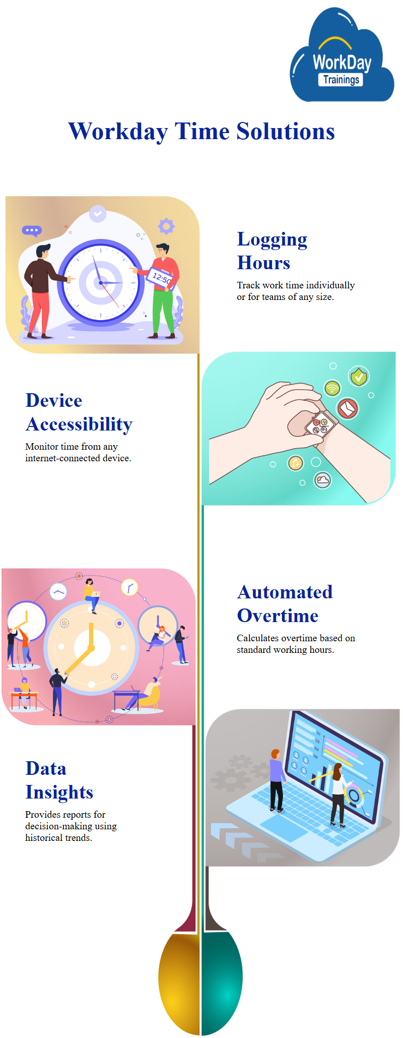 Workday Time-Tracking is a feature that helps track the time of employees working in different time zones. This feature allows for storing data and extracting information critical for billing and payroll calculation. I advise you to enroll in Workday Trainings and learn the modules to understand this cutting-edge technology and hone your abilities. The workday time tracking training covers setting up and managing time clocks, entering labour time into the system, understanding time tracking rules, and reporting time. The Workday Time Tracking Module is a feature of the Workday software suite that allows companies to track and manage employee time, attendance, and scheduling.