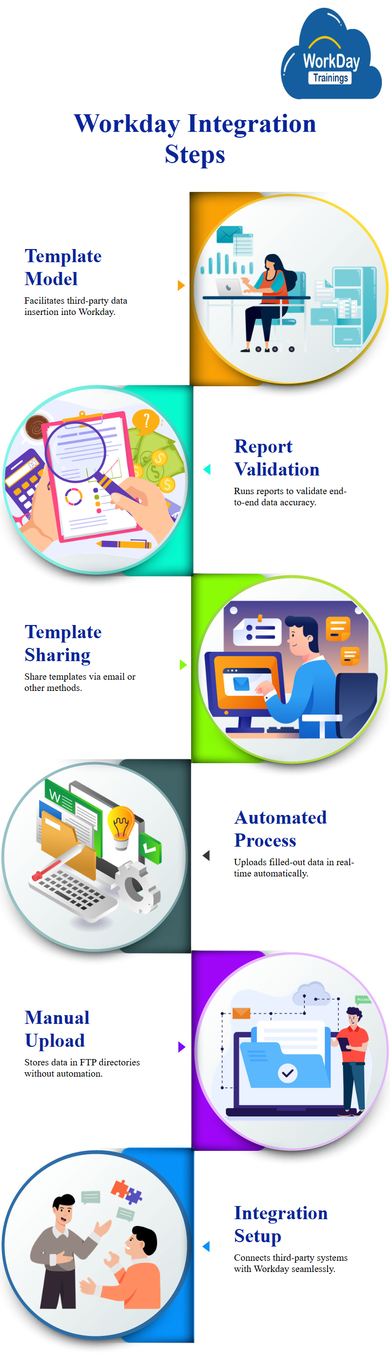 The ability to insert data from a third party into a Workday system using a template model. A report must be created and run on the Workday system to validate end-to-end data.