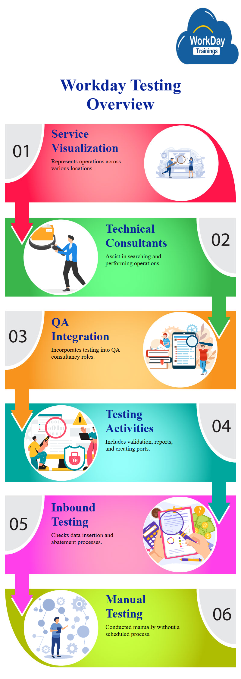 Workday emphasize that testing is a common subject and can be quickly learned from a testing background. Integration testing involves creating Raspberry ports, checking data validation, extracting workday reports, and other activities.